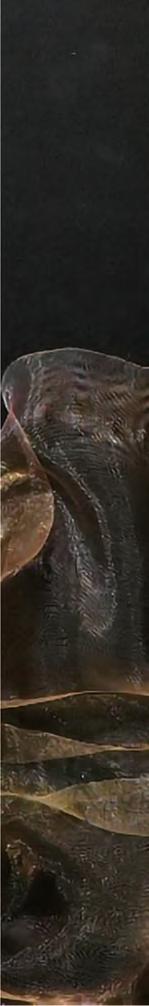 美感地堆砌出奇異、懾人心弦的龐大雕塑; 地面上刻劃着人生的一步一腳印;複雜,感性, 描繪着震撼無窮的生命力。