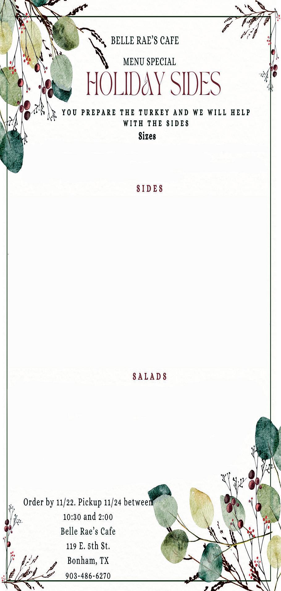 Reader’s Theatre performance before the dinner and fellowship time begins. The center ask for folks to contact them by phone at (903) 640-2196 or email at Director@CreativeArtsCenterBonham.org to let them know how many are coming and what dish you are bringing. Holiday parties – the center is booking holiday painting parties. If your business, church, friend group or other organization would like to schedule their own private paint party, contact the center soon to discuss your plans. Prices start at $20 per person for kids and $30 per person for adults, with a minimum of 10 people. The Art Center’s normal hours of operation are Tuesday – Friday from 10 am to 5 pm and Saturdays from 10 am to noon. The Center will be closed Nov 27-29 for Thanksgiving and will be open on Small Business Saturday, Nov 30 from 10 am to noon. Be sure to remember the center’s art gallery and gift shop when doing your holiday shopping. The center will offer free gift wrapping with a purchase from the center during the week of Dec 17-21. Guests are also welcome to bring in up to 5 items to be gift wrapped for a donation to the center during the same week. The Creative Arts Center is a nonprofit organization with a mission of supporting the arts in Fannin County. They are located at 200 W 5th in downtown Bonham. Get more info by calling (903) 6402196 or going to www.CreativeArtsCenterBonham.org.