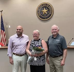 Ross Altobelli Bonham's Director of Community Development, Jennifer Driewer, Permit Technician, H L Compton, City of Bonham Mayor.