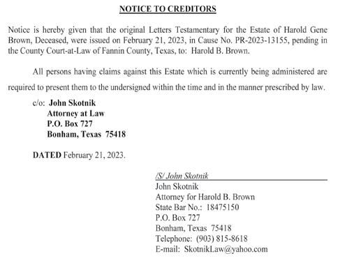 A zoning change had been requested by Arco Holdings Group, LLC for the above listed property to rezone the property from Residential to Commercial. A public hearing on the requested rezoning will be held at Ladonia City Hall, 100 Center Plaza, Ladonia, Texas at 7:30pm on date March 6, 2023. You are not required to attend this meeting. The purpose of this notice is to provide an opportunity for public comment at the time and place indicated above. You may 1) do nothing; 2) attend the meeting and voice an opinion; 3) provide a written statement to the City Secretary at the City Hall address listed above. If you intend to appear in person, please call 903-367-7011 and notify the City Secretary so that the appropriate time can be allocated for the meeting.