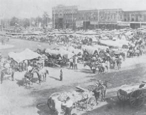 courthouse square at the early cars and horse drawn vehicles that traveled the street below.”