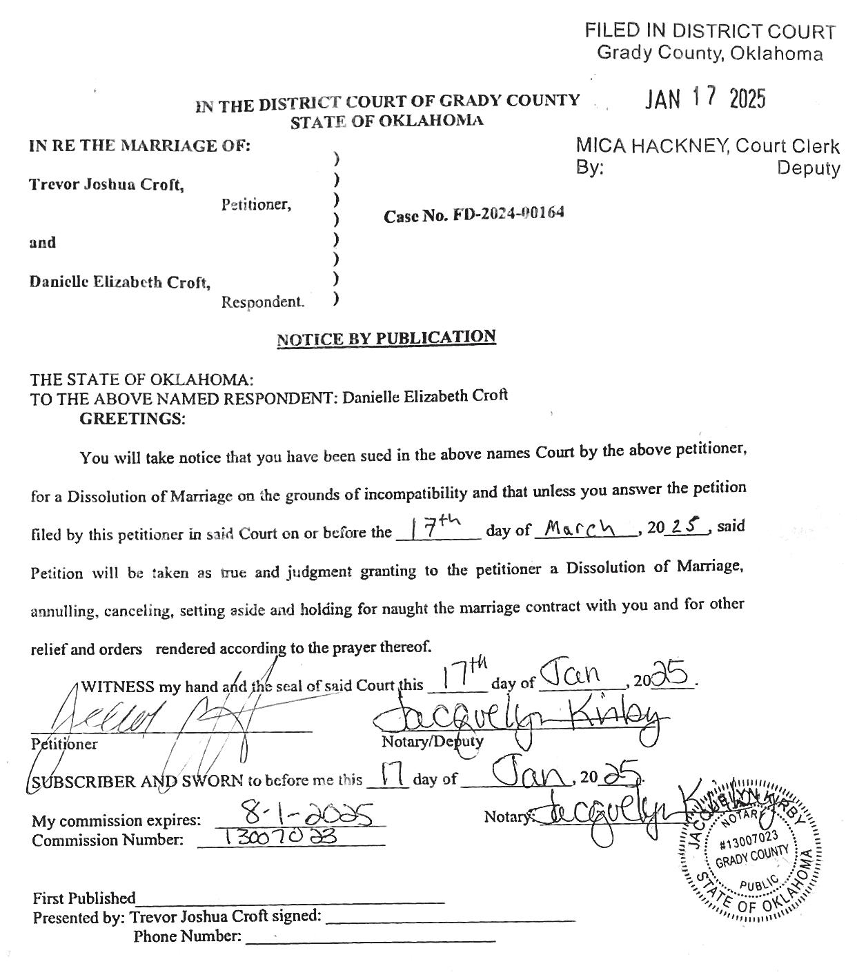Sealed Bids for the construction of a 12” Waterline Improvement Project will be received by City of Trenton at the office of the Engineer, Dunaway, 118 McKinney St., Farmersville, TX 75442, until 10:00AM local time on Wednesday, February 12, 2025, at which time the Bids received will be publicly opened and read. The Issuing Office for the Bidding Documents is: Dunaway, 118 McKinney St, Farmersville, TX 75442, 972-784-7777, Eddy Daniel, P.E., EDaniel@dunaway. com