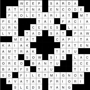 58. Expensive cut of steak 63. Popular James Cameron film 65. A __: relating to knowledge gleaned from deduction 66. Kids’ snow toys 67. Flip side to yin