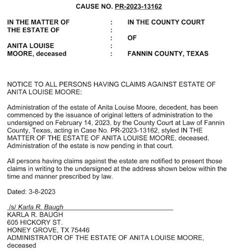 Dates of Publication: February 21, February 28, March 7, and March 14, 2023.