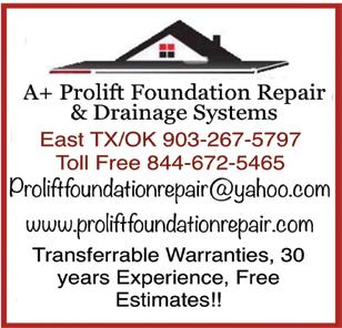 Section A Page 5 • May 23, 2023 • 903-583-3280 PERDUE’S FOUNDATION REPAIR Specializing in Pier & Beam And Slab Foundations Free Estimates Life Time Warranty Available BBB Member Email: perduesfoundation@yahoo.com Bonham (903) 583-1271 Sherman (903) 893-7113 1-800-942-7113 JOHN’S SEPTIC SERVICE BIG Locally Owned & Operated•24 Hour Emergency Service 903-505-9670 Aerobic Maintenance Contracts • Septic System Installations • Porta Potty Rentals • Septic Tank Cleaning & Repair Tim Welch 903-249-6774 Jeremiah Welch 903-249-5750 903-583-3986 903-640-3986 110 W. 1st Street, Bonham, TX 75418 Pat’s PUMP SERVICE •Septic System Cleaning •Installation •Repair •Inspections •Aerobic Maintenance & Training •Storm Shelters •Porta-Potty Rentals Jack Berni Seamless Rain Gutters 22 Colors Quality Since 1980 Premium Vinyl Siding 8/10/10 (903) 583-8796 jackberni.com Clement & Sons Topsoil • Fill Sand • All Kinds of Rock We will build your roads, driveways, homesites and business sites. Dozer • Loaders • Excavators • Dump Trucks Mitchell 903-227-1236 Shane 903-271-0514 903-583-2390 PAUL HODGE CONSTRUCTION CO. Renovations • Remodels • Custom Homes Siding • Additions • Replacement Windows 903-640-1941 Cell: 903-640-6069 hodge.construction@verizon.net www.paulhodgeconstruction.com 12-11-18 Custom Glass & Mirror 215 North Main Bonham,Texas 75418 903-583-7577 • Window Replacements • Frameless Shower Doors •Storefront Doors/Windows Commercial & Residential L & L A/C-ELECTRICAL Commercial and Residential (903) 583-2369 TECL25417 TACLB27508E OWNERS: Thomas Lackey / Derek Wilson 5/21/19 SALES SERVICE INSTALLATION 1/12/21 TECL 18003 TACLB024648C Office (903) 583-4018 Sales • Repairs • Installation Services Commercial • Residential 1580 FM 273 • 888-991-6771 10/12/21 Full Service Plumbing and Septic License #M-39736 • #OS0028077 G D C • Pond Clean Outs • Fence Rows • Demolition and Haul Off • Clearing of Brush and Trees • Soil Erosion Damage Repair • Building and Renovation of Roads • Building and Maintenance of Ponds GILDERSLEEVE DOZER CONTRACTING (903) 587-9015 Ron Gildersleeve, Owner/Operator Leonard, Texas Ranch Beautification is our Specialty 1/4/22 5/19/15 Doctor Thomas E. Hunt (903) 583-1814 (903) 227-0525 715 S.E. Hwy 11 Wolfe City, TX 75496 Free Estimates Quality Guaranteed Over 25 yrs. Experience TheRoof GARAGE DOOR SERVICE CO. Commercial & Residential Sales & Service On All -Doors, Springs & Openers Call Barry Williams 903-623-0025 Window Replacement • Contract Glazing • Custom Mirror Work Patio Doors • Screens • Tub Enclosures • Shower Doors Insurance Claims Adjusted MOST DOMESTIC & FOREIGN AUTO GLASS WINDSHIELD REPAIR & REPLACEMENT Tri County Glass Inc. LEE HAMBY, Owner Bus. 903-583-8351 Fax 903-583-3096 114 E. 16th Bonham, Texas 75418 8/10/10 A PERFECT ROOFING/REMODELING 32 YEARS EXPERIENCE COMMERCIAL RESIDENTIAL ALL WORK GUARANTEED FREE ESTIMATES • NO JOB TO BIG OR SMALL OWNER DANIEL TAYLOR CELL 903-422-0561 SENIOR CITIZENS’ DISCOUNT MAKING YOU HAPPY IS MY JOB aperfectroofing@gmail.com 408 W. SAM RAYBURN ECTOR, TX 75439 www.aperfectroofingremodel.com www.majestic-theatres.com 231 TX-121 South • Bonham, TX NOW OPEN EVERYDAY 903-583-2222 For Movie Times 1/17/23 Majestic Cinemas Majestic 6 Theatre Bonham 1/31/23 Paris Lumber & Building Center 3555 N.E. Loop 286 • Paris, Texas (903) 785-0771 (800) 334-5716 Service Selection Satisfaction CELEBRATING 56 Years 1967-2023 HITACHI 100 EXCAVATOR WITH THUMB ANDERSON DOZER SERVICE WAYMON ANDERSON, OWNER & OPERATOR BONHAM, TX 75418 • MOBILE: 903-990-6688 For All Your Dirt Work Needs Fence Rows, New Ponds & Clean-Out, Site Preparation, Clearing, Demolition! CAT D6 H 3/30/21 SHORT INCOME TAX SERVICE Lisa C. Short 903-784-3797 3206 Bonham Street, Paris, TX 75460