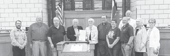 Commissioners Court presents Recognition Proclamation to Ruth and Phillip Blevins of Hickory Barbecue. The Blevins are joined by friends for this special honor.