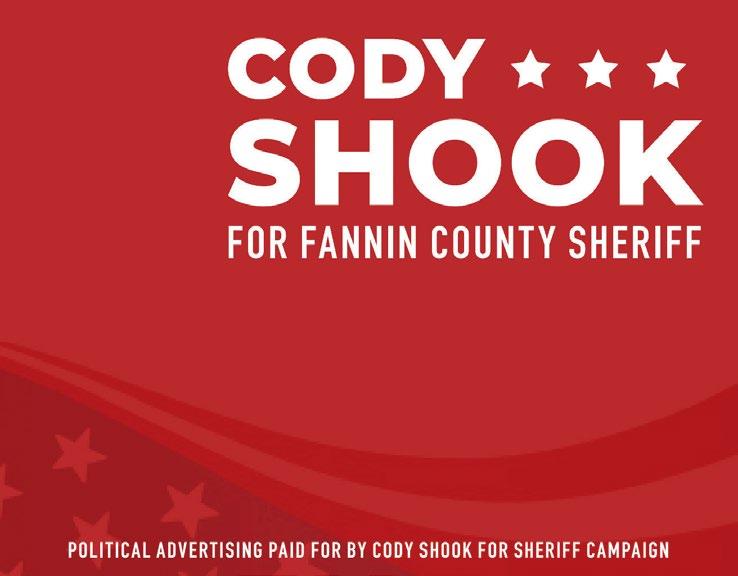Page 3 • June 11, 2024 • 903-583-3280 Bonham Best Storage (903)304-9995 bonhambeststorage.com 2624 N. Center St. (In between Fat Chance Gym & Krazy Lots) Call about our discounted rates! Monday - Friday: 9:00 - 5:30 204 E. Sam Rayburn Dr. • Bonham, Texas 75418 903-583-1878 Lots to Choose From! Starting at $59 .00 Happy Father’s Day! Thank you to the people of Fannin County for entrusting me to be your next Sheriff. I am humbled and honored to have your support. I look forward to preserving our sense of community through professional and current law enforcement methods and techniques. Together we can move forward with our county to honor our past and preserve our future. May God bless Fannin County and each of you. Our Father Our Father was a good father and he loved all of us. It did not always show on his face or in his words but we knew that he loved all of us. If one of us did something wrong or did not do what was expected of us our father would make sure that we were punished. Our father did not have much of an education but he was a hard worker and did the best that he could with the limited education he had. Our father never had a bad word to say about anyone he knew; he did not gossip about anyone. Our father's first wife and children died when he was a young man. He could not understand why God let them die at such a young age, but he finally got back with God and lived a good life. If you are one of the lucky ones to still have your father with you today, give him a big hug and tell him you are so lucky to have such a good father in your life. May God bless all fathers this Father's Day.