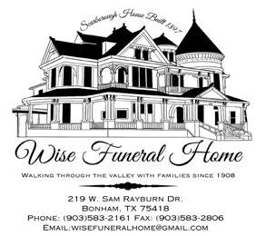 TxDOT Project Box Recipe Sponsored by: with Weesie Family Owned By Gerald and Judy Howard 903-583-5555 Bonham Fuulll Seervice Funeeral Home Cremations s • Tradittioonal Servviiccees Pree-aarrraanged Fuunnerals s bcsfuneral1@gmail.com Cooper-Sorrells Funeral Homes 903-378-2291 Honey Grove 4/11/23 9/26/23 • Weekly Pick-Up • Dependable Service • Serving All Of Fannin County • Locally Owned - Barry & Kim Williams Office • 903-583-3610 countytrashservicetx.com 2 Yard Dumpster $80.00/mo 4 Yard Dumpster $125.00/mo Regular Service $30.00 / Month with 1 cart provided