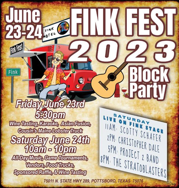 903-821-7663 Tommy Stapleton, Owner Serving North Texas Area Since 1981 www.toproof.net BONDED/FULLYINSURED INSURANCECLAIMSSPECIALIST June 20, 2023 Circulation 15,500+ - Bailey, Bonham, Dodd City, Ector, Gober, Honey Grove, Ivanhoe, Ladonia, Leonard, Randolph, Ravenna, Savoy, Telephone, Trenton & Windom 224 N. Main St., Bonham, TX 75418 fcleditor2020@gmail.com www.fannincountyleader.us Ph: 903-583-3280 • Fax 903-583-3945 The Paper Of Record for Fannin County Texas Serving all of Fannin County For 50 Years Locally owned & operated ● Classifieds page 16, 17, 19, 20 ● Recipe page 4 ● Legals and Emp pages 16, 18, 19 ● Sports page 7 ● Obituary page 13 Spend life Fearlessly. FirstUnitedBank.com Bonham • 120 W. Sam Rayburn Dr. • Bonham • (903) 583-2101 Leonard • 200 W. Collin St. • Leonard • (903) 587-3314 Sale Dates: June 19 through June 24 OPEN: Mon. - Sat. 7 AM - 6 PM Bonham Building Supply 2430 N Center • Bonham, Texas • 903-583-1874 KingsFord Charcoal, 16-lb, 2-pk SALE $1988 REG. $2699 118118 SALE $299 REG. $479 188004 Green Thumb Bow Rake / Round-Point Shovel Men’s Nitrile Palm Gloves, Black & Gray, XL Green Thumb Hedge Shears, 16-in. SALE $24 REG. $2999 109620 SALE $1499 REG. $1699 217166 SALE $999 REG. $2199 248283 / 248297 Urban Metal Torch, 65-in. SALE $5999 REG. $9999 Zero Gravity Chair, Gray, XL Master Mechanic 6-in-1 Screwdriver SALE $199 REG. $649 578045 SALE $3699 REG. $5999 109867 Adjustable Bath & Shower Seat Grilled Cheese Toaster, Yellow SALE $2899 REG. $3399 112084 CALL TODAY TO SCHEDULE AN AIR CONDITIONING SYSTEM PRECISION TUNE-UP 903-583-4018 6/20/23 BEAT THE SUMMER HEAT! Mention our ad to receive a 10% discount on your precision TUNE-UP! Expires 7/7/23 Fireworks at Lake Bonham Live Music 7pm - 9pm Fireworks Show to Follow ● Tuesday ● July 4th d Free & Open to the Public d Bring your Lawn Chair Sponsored by Bonham Visitors Center and Kiwanis Club plus other Community Businesses