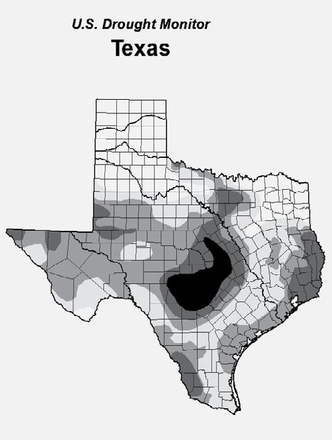 Temperatures were near normal to slightly above over most of the region, with the greatest departures from normal in west Texas and the Texas and Oklahoma panhandles, where departures were 4-6 degrees above normal. It was an incredibly dry week over the region with only a few pockets of showers over northern Arkansas and coastal areas of Texas. Most of the region recorded zero precipitation for the week. Severe drought expanded over east Texas and southern Louisiana and a new area of severe drought was introduced over far west Texas. Moderate drought expanded over southwest Oklahoma and northern Texas.
