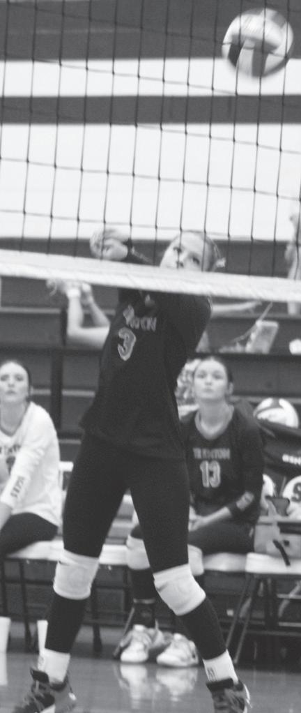 finalist squad will help the Lady Tigers' campaign this season to be one of the new district's top four teams: senior Aubrey Alexander, a first-team selection; junior Jessi McMahon, a secondteam selection; seniors Lexi Dykes (Benedictine College (Kan.) signee), and Allie Faggart, honorable mentions. Winning a hard-fought five-set match at ranked 1A Savoy on Sept. 10 continued Trenton's preparations for 102A play under new head coach Cody Garewal.