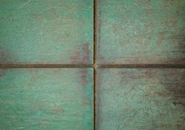 In the same way rust develops on iron, patina develops on copper when the copper sulphate on the surface interacts with oxygen in the environment. Importantly, unlike rust which corrodes iron, patina actually protects and preserves the copper underneath.