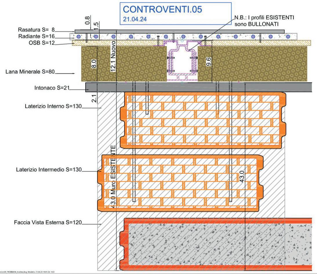 Il collegamento alla struttura in muratura o in cemento armato viene effettuato tramite degli ancoranti meccanici inseriti lungo tutta l’estensione del cappotto interno.