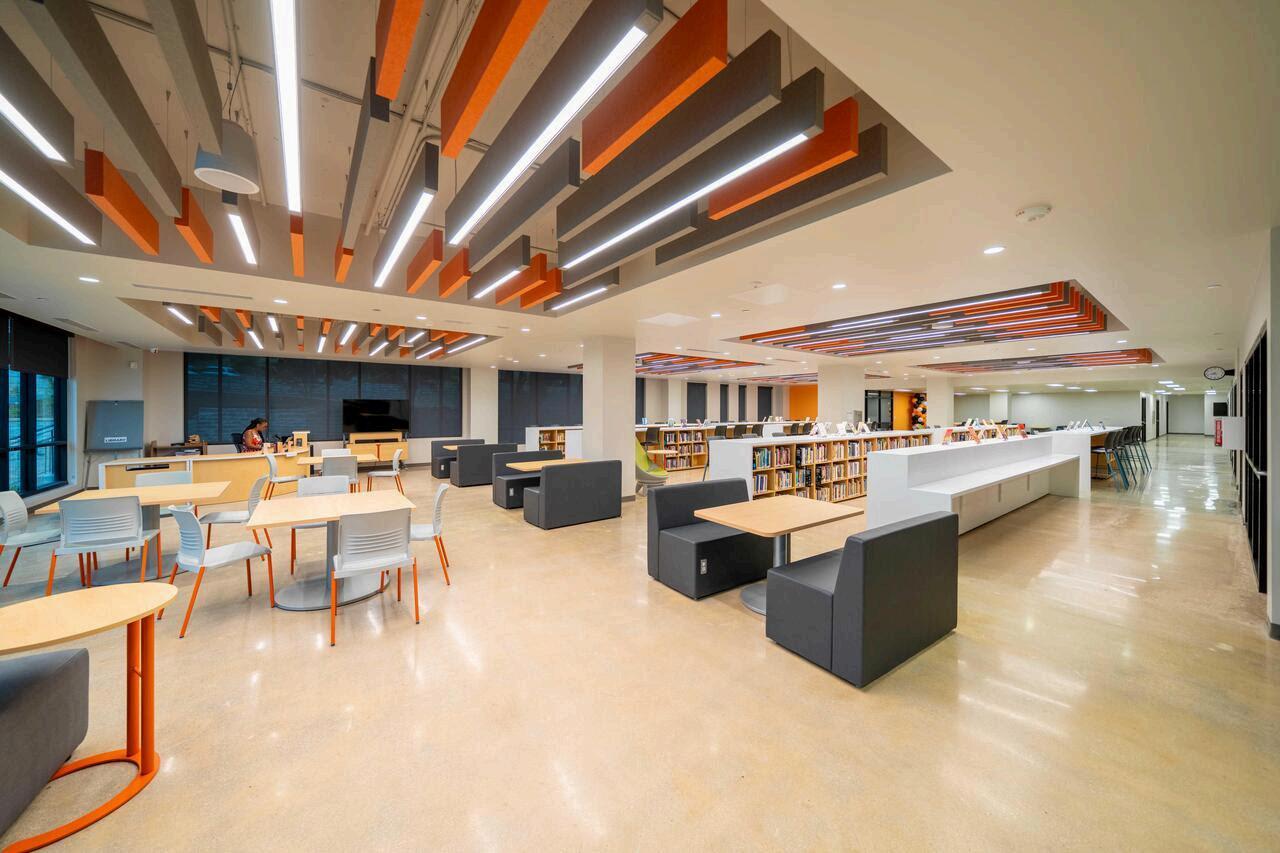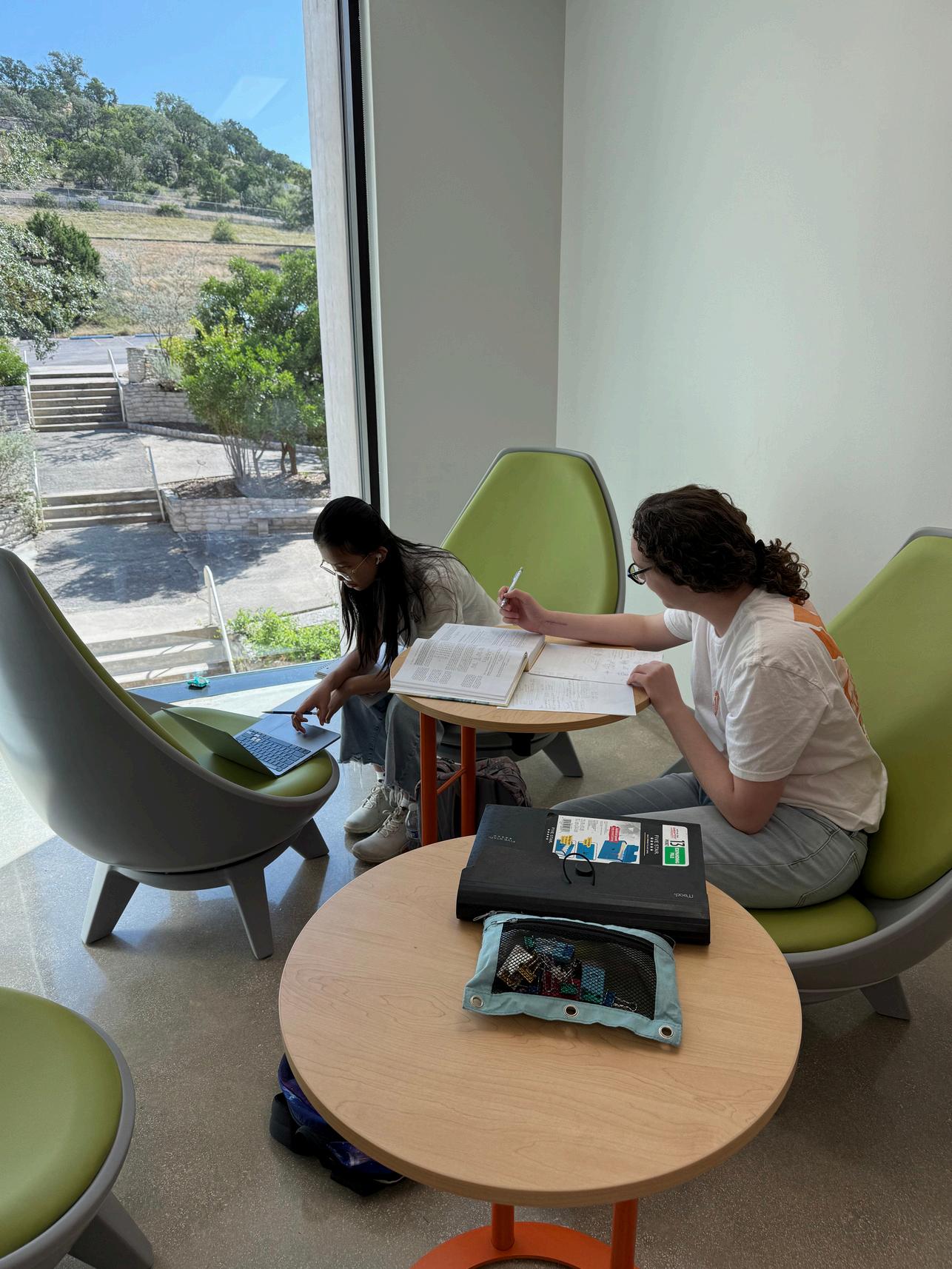 Students study by the natural light of one of the many new windows.
