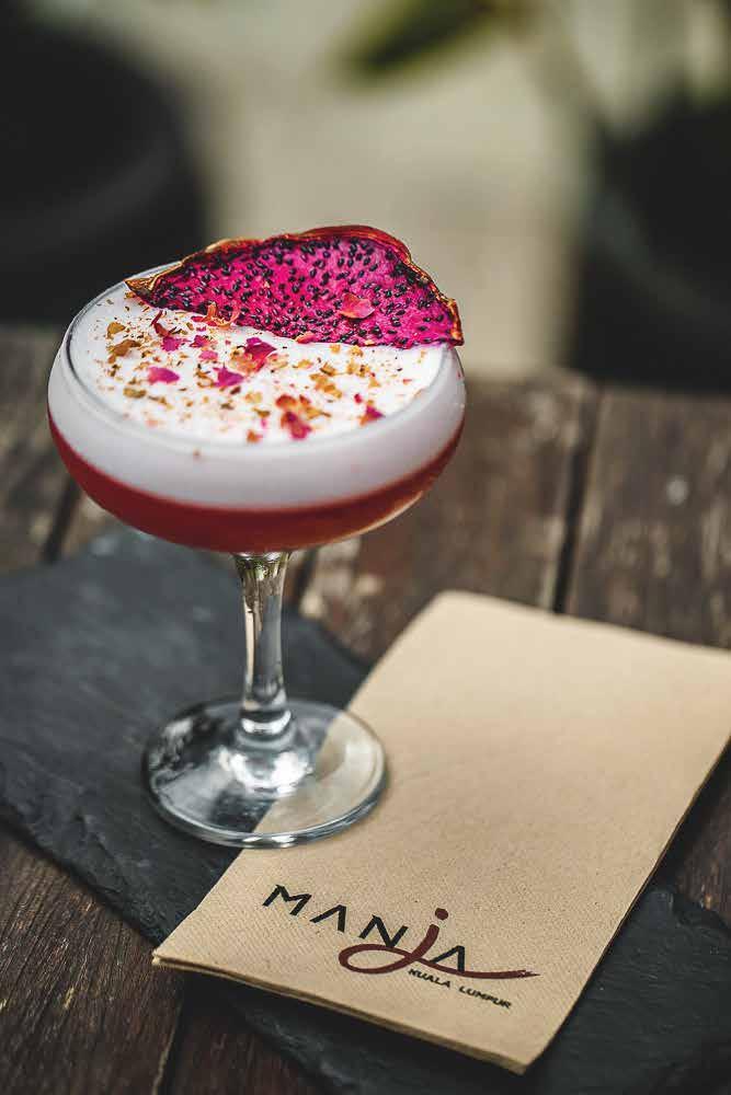This is the Manja stairway to a good time. Dark caribbean rum, infused with local palm sugar, balanced out with fresh green apple foam.
