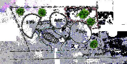 This symbol is known as the “Sankofa” which translates to “go back and get”; san - to return ko - to go; fa - to fetch, to seek and take. It represented by a stylized heart shape or by a bird with its head turned backwards while its feet face forward carrying a precious egg in its mouth. Sankofa speaks to importance of returning to your roots. So for this design, the buildings have been arranged following the the stylized heart in a triangular-like arrangement as shown in the diagram on the right.