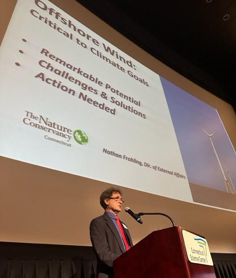 “Offshore wind is crucial to our ability to address the climate crisis, particularly here in New England where wind resources are abundant and where wind can make a big difference in power reliability, especially in the most critical time, winter,” said Nathan Frohling, Director of External Affairs for TNC in CT (pictured on the right). “It also makes economic sense.”
