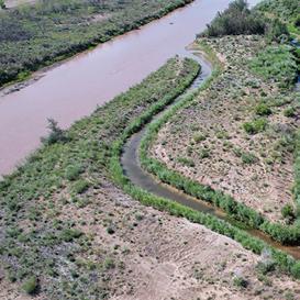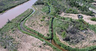 Un nuevo canal construido este año con árboles y vegetación a la orilla del río filtrará la contaminación de 4.5 millones de galones de agua pluvial anualmente mientras crea un hábitat para la vida silvestre en Corrales.