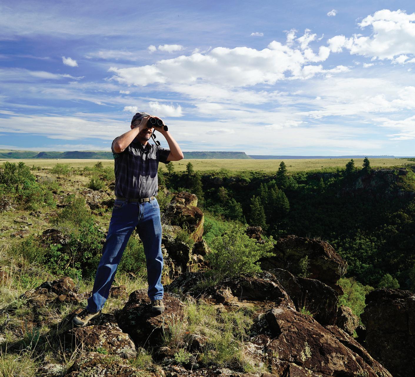 en la portada TNC y Trust for Public Land trabajaron juntos para adquirir 2,224 acres en Raton, que pueden expandir el adyacente Parque Estatal Sugarite Canyon y un día conectarse con el cercano Parque Estatal Fishers Peak en Colorado. © Brad Cory/TNC; recuadro de izquierda a derecha Flor silvestre con pincel © Katie Millard/TNC; Un águila pescadora macho se sacude el exceso de agua después de zambullirse cerca del malecón en Huntley Meadows. © Tracy Beattie/TNC Concurso de Fotografía 2021; El director estatal, Terry Sullivan, atrapó y liberó una trucha marrón mientras pescaba en la Reserva Valles Caldera. © Terry Sullivan; esta página de arriba hacia abajo Director estatal Terry Sullivan © Alan W. Eckert; El sol saliendo cerca de Albuquerque. © Roberto E. Rosales