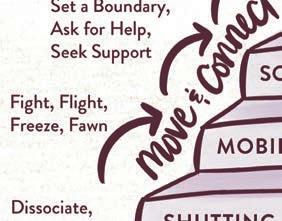 Once you go down a step or two, you can’t just think your way back to safety. You must engage your body in some way to reach that state of calm again. Our bodies are where we carry our stress, and it’s through our bodies that we can begin to release it. Both movement and connection are integral in helping you move from a place of shutdown to a place of felt safety.