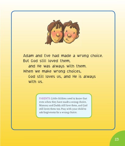 Parents: Little children need to know that even when they have made a wrong choice, Mommy and Daddy still love them, and God still loves them too. Pray with your child to ask forgiveness for a wrong choice.