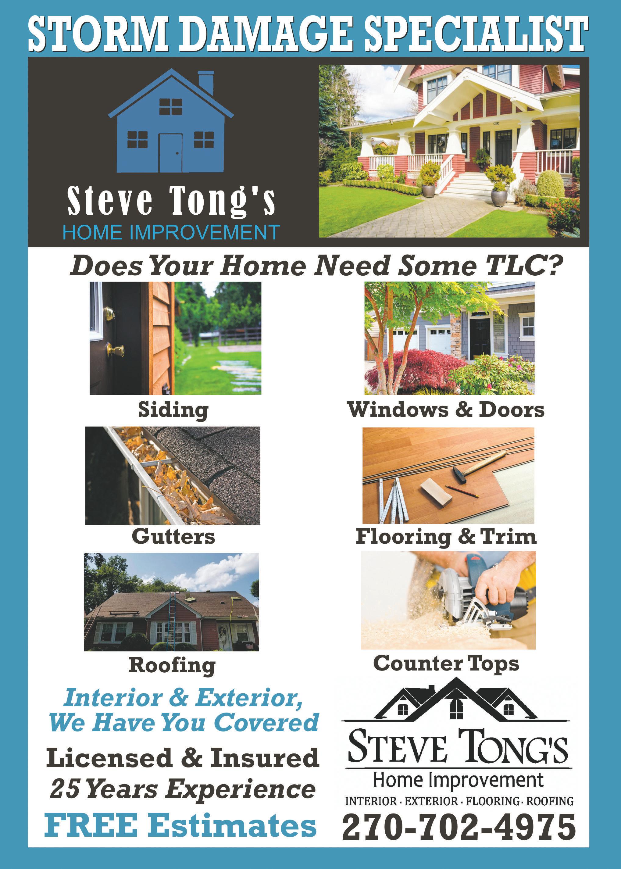 TRISTATE ANTENNA SERVICES Painting, Tower Assembly or Disassembly, & TV Antenna Reception. All Work Guaranteed. 270-245-7481. MOWING YARDS, Clean up properties, Power Washing, 270-903-2632. DOUGLAS SEAMLESS GUTTER & CONSTRUCTION Gutters, Facial, Pole Barns, Concrete & Remodels. Licensed & Insured. Free Estimates. 270-589-9393 E’s EVERY DAY ROOFING & HOME IMPROVEMENT Experienced & Affordable, Licensed & Insured. 270-316-3394 CHECKLIST SOLUTIONS & Home Improvements Serving Henderson & Owensboro Area. No job too small, we do them all. Free Estimates. 270-748-7778 or 270-485-3618. LOWE’S CONTRACTING SERVICE Roofing, Siding, Decks, Windows, Doors, Additions, Concrete/Masonry work. Free Estimates. 270-316-8291. LA MACHINE & TOOL General Machine Services, competitive rates. Special rates for the hobbyist, farm, & special projects. No job is too small. Family owned & operated business located in Madisonville, KY. I also offer gun stock refinishing, machine custom muzzle brakes, & minor firearm repairs. Attention to detail & satisfied customers is our #1 priority. Leave message/ contact info at 270-339-1376. $40 Shop Rate. RIVER CITY MASONRY & CONSTRUCTION •Brick & Block •Tuck-Pointing •Mailboxes •Paver Stone •Retaining Walls •Decks & Fences •Landscaping & More. Licensed & Insured. Free Estimates! 270-315-8060. RELAXATION STRESS REDUCTION THERAPY Deep Muscle Massage Therapy. Days, Evenings, & Weekends. By Appointment 812-306-3690. RETIRED PAINTER Looking for work painting Apartments, Houses, & Exterior painting. No live ins. Phone 270-302-5324 AARON LOHDEN CONSTRUCTION Roofing • Siding • Gutters Experts since 1991. Will not be undersold. Licensed, Bonded, Insured. Over 6000 happy customers. Same day Estimates.812-228-0962. A CITIZENS ROOFING Specializing in roofing & Residentialgutters. & Commercial. Financing Available. Free Estimates. 812-428-2343 FIBERGLASS UNDERGROUND/ SAFE ROOMS/ DRIVE-OVER FLOOR MODELS. Underground models seats 4-20; Safe Room models seats 2-100; Garage Floor model seats 6. Lifetime warranty. Tested at Texas Tech to withstand greater than F5. StormIntegrityShelters, 812-677-0010. THE TAX PLACE, has moved from 407 E. 9th Street to 419 JR Miller Blvd. Same phone & same great service & prices. Mary Glahn Russelburg, Kathy Vieder Brown, & John J. Houle.270-685-3811. TRACTOR REPAIR & PAINTING Work on all makes. Partial or Restorations.Complete Specializing in International Farmall. 270-302-3739 or 270-315-1148. YOUNG’S TREE SERVICE Trimming or Removal with bucket truck or crane, will reach 100 ft. Also stump removal. Reasonable. Licensed & Insured. FREE ESTIMATES. Also firewood available! 270-929-4277 or 270-771-4159. PAINTING ANTENNA SERVICE HANDYMAN HOME REPAIR & IMPROVEMENTS MACHINE SHOP MASSAGE THERAPY ROOFING STORM SHELTERS TAX SERVICE TRACTOR REPAIR TREE SERVICE MASONRY • Traeger Grills • Craftsman Tools • Case Knives • Milwalkee Power Tools • Tarter Gates & Feeders • Feeds & Minerals POST FRAME BUILDINGS ” “Start The WINTER Off Right with a NEWBuilding From CUSTOM SIZES FOR ALLYOUR NEEDS ACE HARDWARE & BUILDING SUPPLYINC. 30’X 40’X 10’ 667 US 431 North Livermore, KY. 42352 270-278-2816 FARM • HOME • GARDEN WE ARE YOUR FEED HEADQUARTERS SPRING