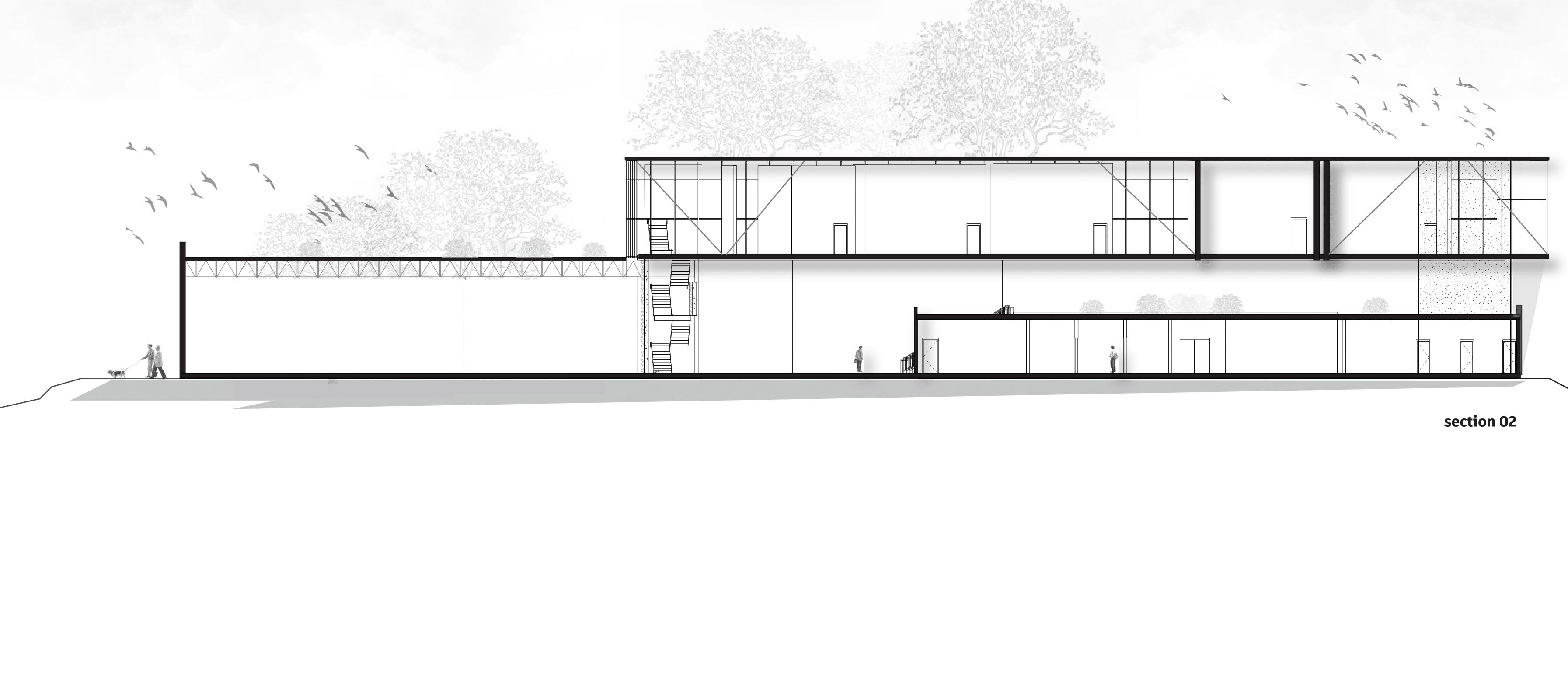 In the creating this wall section design, I focused on utilizing the proper materials to illustrate the intended realistic materiality. In this design, created a polycarbonate glazing system along with using 12” concrete masonry to support the overall system. Further details of this wall section are provided earlier in the portfolio on page 09.