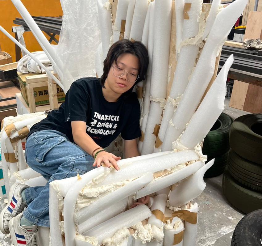 這段期間,設計一次次被推翻重塑,好幾 度陷入嚴重的自我懷疑,但我就是拼了命 地把這三年在北藝學到的一切,全部榨乾 運用在這場戲劇當中。
