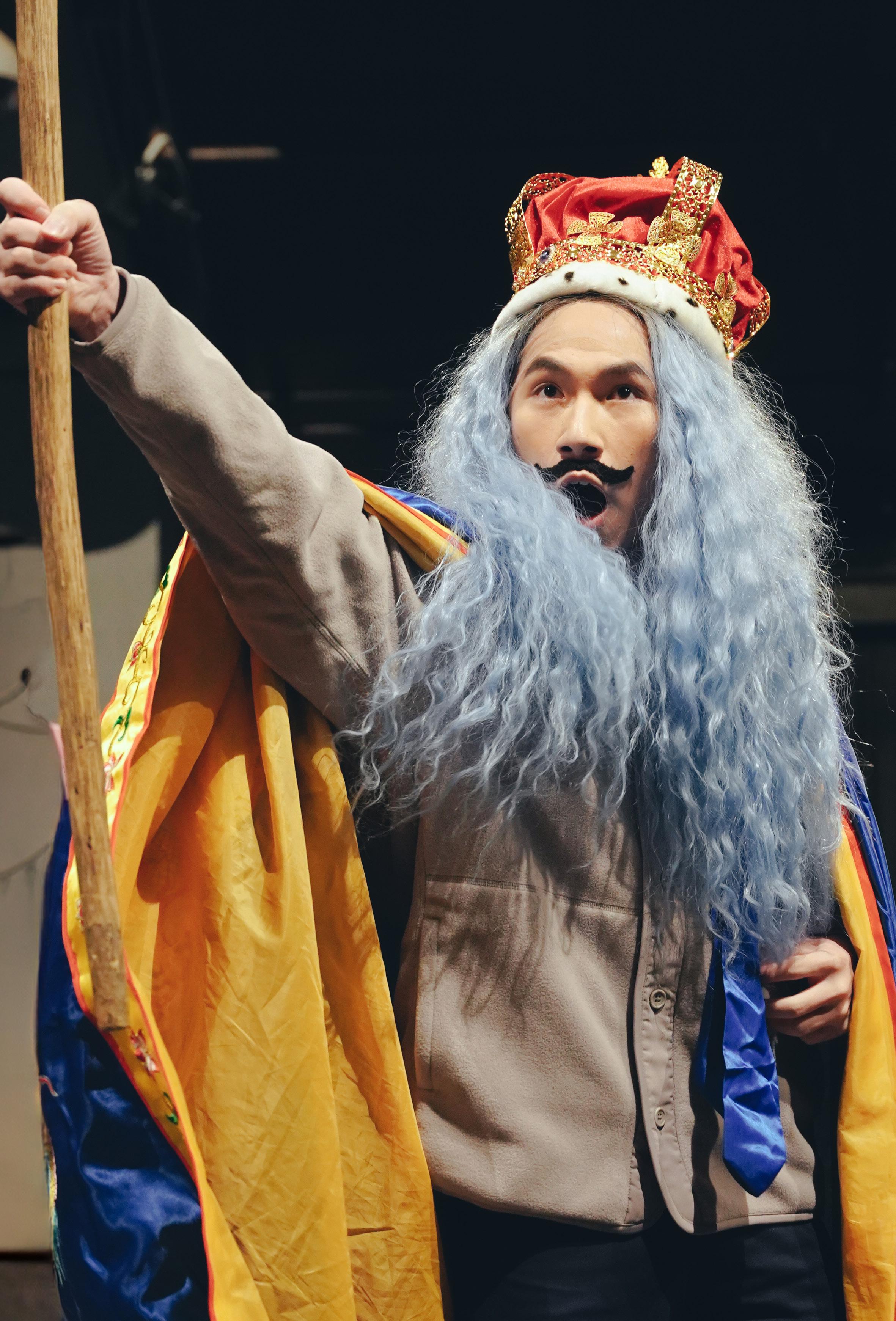 這齣戲法文原名叫Le Roi se Meurt ,但我 第一次看到這戲是2009年在百老匯上演的英 文製作Exit The King。當時自己還是個學生 演員,看到Geoffrey Rush飾演國王「登瘋」 造極、收放自如的精準演技,滿腦子想的都是 有朝一日要拿下這裡面的角色。