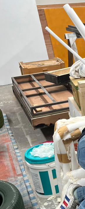 幸運的是!!!我 不是一個人在戰鬥。每當我在設計稿前卡 關、陷入極度焦慮時,導演總能給予我滿 滿的情緒價值,一步步一起發想、解決問 題,將那些荒謬與掙扎轉化為真實的設計 細節。