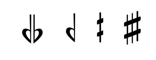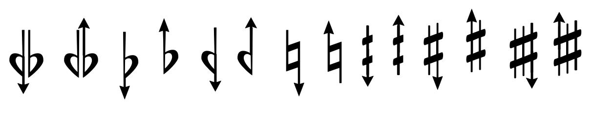 Quarter-tone accidentals, denoting tempered quarter-tone steps implemented into the twelve-tone equal temperament.