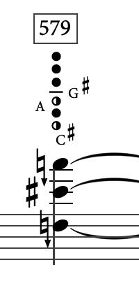 Triangular noteheads far above the staves and without ledger lines represent very high but undetermined pitches.