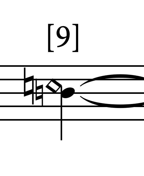 T-P brushing tremolo - fast alternating the contact position of the bow between fretboard and bridge, all strings muted natural harmonics - specifed with small numbers in brackets, always referring to the corresponding open string as fundamental:[2]=octave; [3]=octave+ffh; [4]=2 octaves; … ; [8]=3 octaves; [9]=3 octaves+second; … ; [x]=very high but undifned harmonics