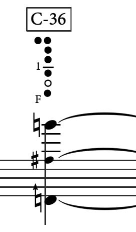 multiphonics are labelled with their corresponding module number , notation partially simplifed 1