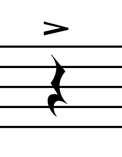 Targeted dynamic marks on a rest sign, suggesting the loudness of an imagined sound and implying its virtual physicality.