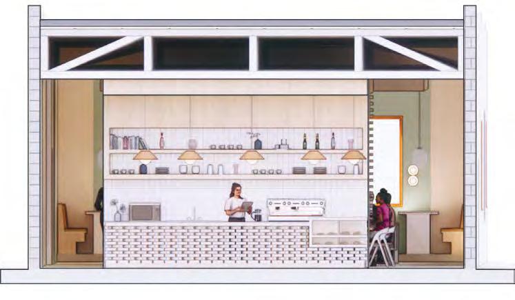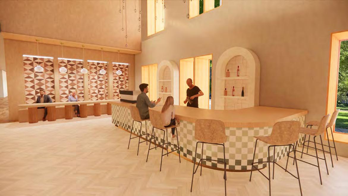 The focus of this project was to incorporate the use of a natural, sustainable material in a co ee shop and wine bar, that includes a performance space. Through several individual material experiments with straw, the result was a Springdale, the co ee shop contains several design elements using the straw bar includes a neutral color and material palette, and is a multi-functional space for all to enjoy.
