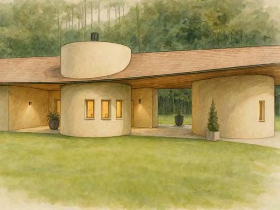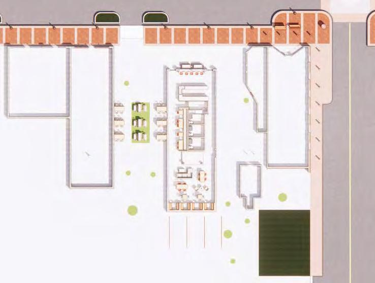 straw and clay brick. Using an existing historical building located in downtown Springdale, the co ee shop contains several design elements using the straw bricks in a variation of the hit and miss brick pattern. The co ee shop and wine