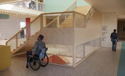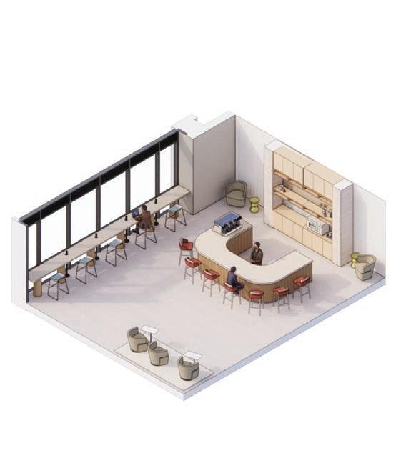 The NEXT project was a fictional global architecture new o ce in Dallas, Texas. The space was height was 30 ft. The design in the NEXT o open airy spaces. Upon entering the space, monumental staircase and waiting area with the use of material and furniture. Each workstations, and all of the spaces are accessible. employees to work in person by o ering