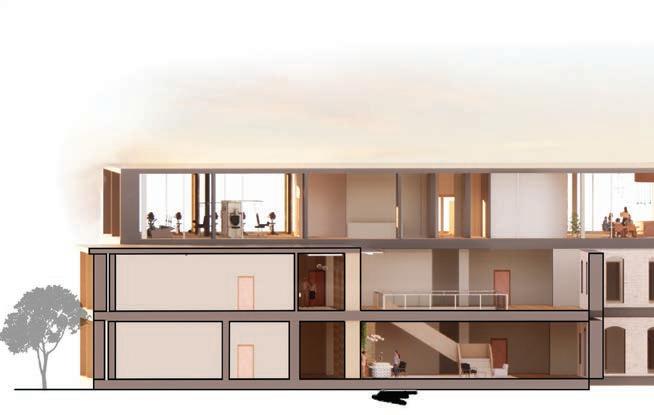 Each o ce has visibility to the accessible. The design encourages a programmatic variation of spaces.