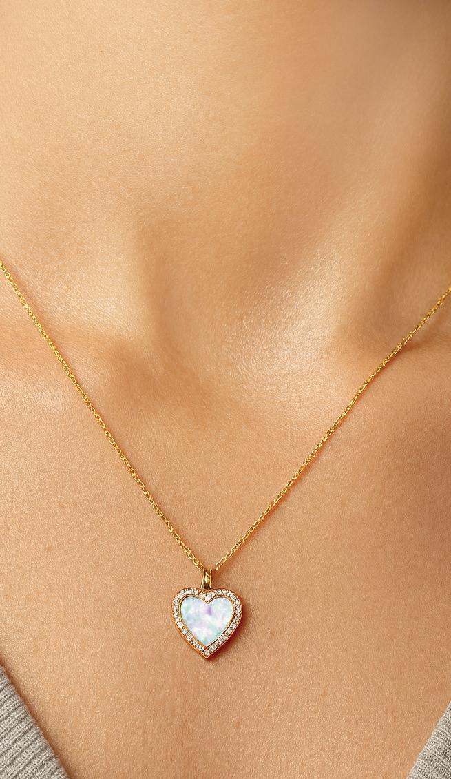 Argent sterling, DiAmi et opale créée en laboratoire. Finition en or 14K. Collier 17"+2" TN40125 99 $