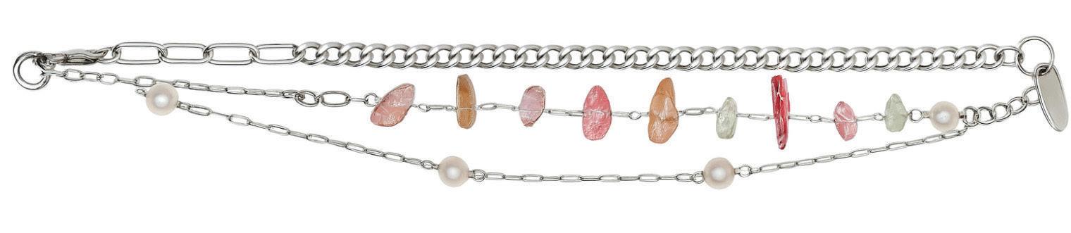 BRITT Acier inoxydable, Perle de coquille et Vitrum. Bracelet 6,75"+1"