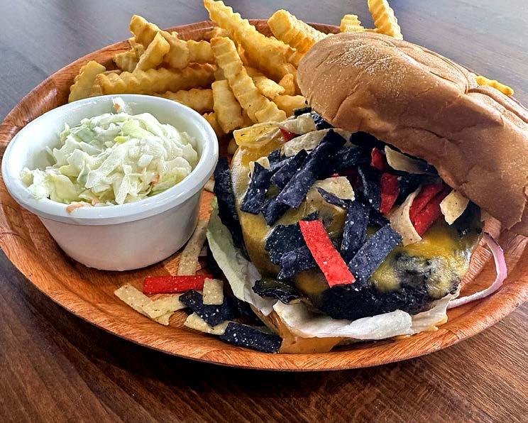 Southwest burger - Our original 1/2lb burger with cheddar cheese chipotle aioli tortilla strips lettuce and tomato, $9.99. Includes fries and slaw.