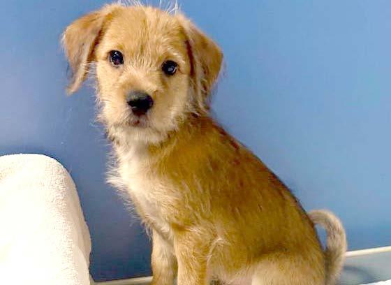Say hello to Barrel, a 2-month-old wire-haired Chihuahua-Terrier mix who’s as cute and scruffy as a hayride pup can be! He came in with his siblings, so he’s great with other dogs and puppies, and he loves children of all ages — the perfect little buddy for a family ready to add some joy this fall. Barrel is full of energy, always outgoing, and never short on kisses!