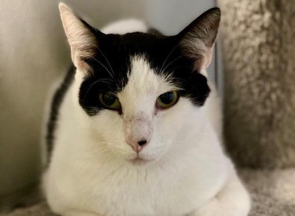 Peanut is a black and white male American Shorthair mix. He is approximately 10 months old. He has been neutered. Peanut is a very loving but shy boy. He can be a little reserved but once feeling safe loves to be next to you and is quite curious. He does good with other animals but isn't super playful with them and usually keeps to himself.