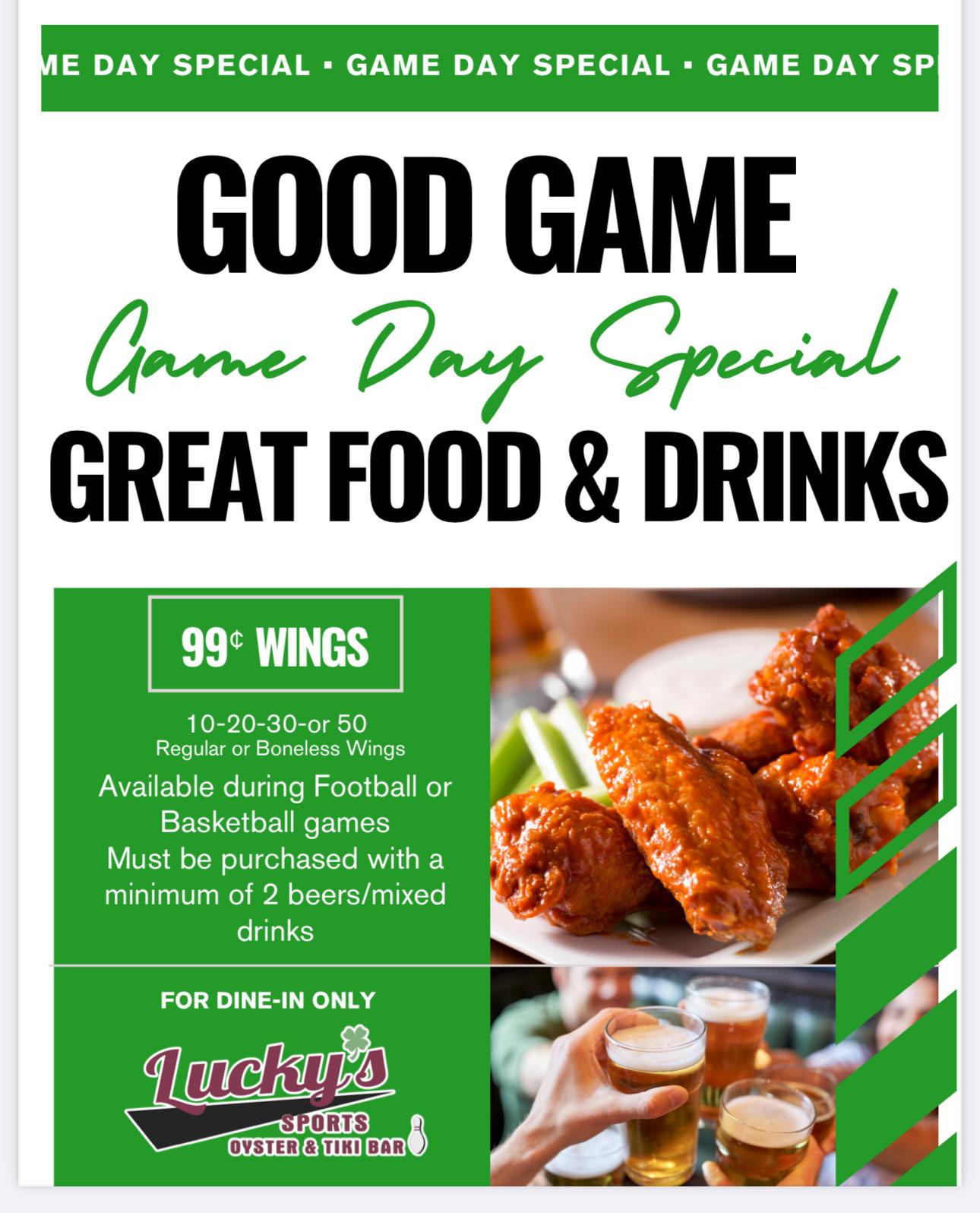 Lakeland’s Best Family Sports Pub. 40+ HD TV’s, NFL Ticket Sundays, NCAA Gameplan Saturdays. Happy Hour 2-4-1 All Day, Everyday. Bingo Mondays from 5-6 pm. Kids Eat Free Wednesday from 4-8 pm. Trivia Night on Thursdays from 8-10 pm.