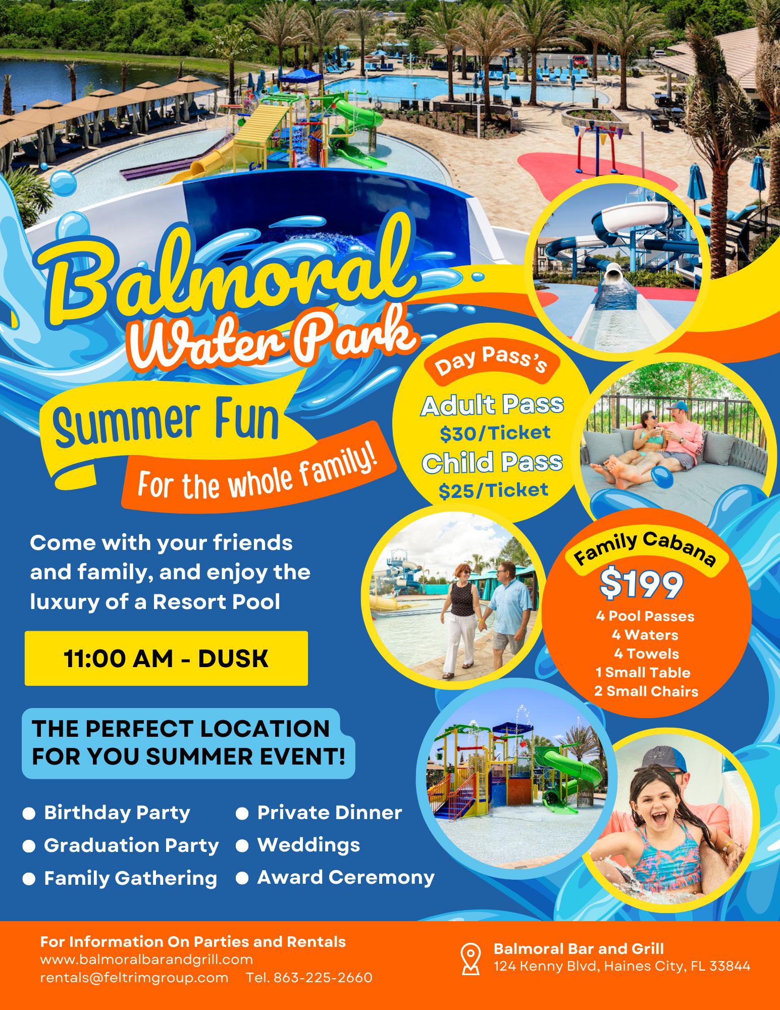 Offering a casual dining environment complete with poolside outdoor seating, the Balmoral Bar & Grill serves up poolside lunches, afternoon drinks and evening meals. Popular among resort guests and locals alike, our poolside bar in Haines City offers a full bar with TVs and features a menu of shareable appetizers, fresh salads, delicious sandwiches, and more. Live music also offered on the patio most Saturday nights. Check our Facebook for schedule. Bar & Grill is open to the public and is located within Balmoral Resort Florida in Haines City, minutes from Winter Haven and Davenport.
