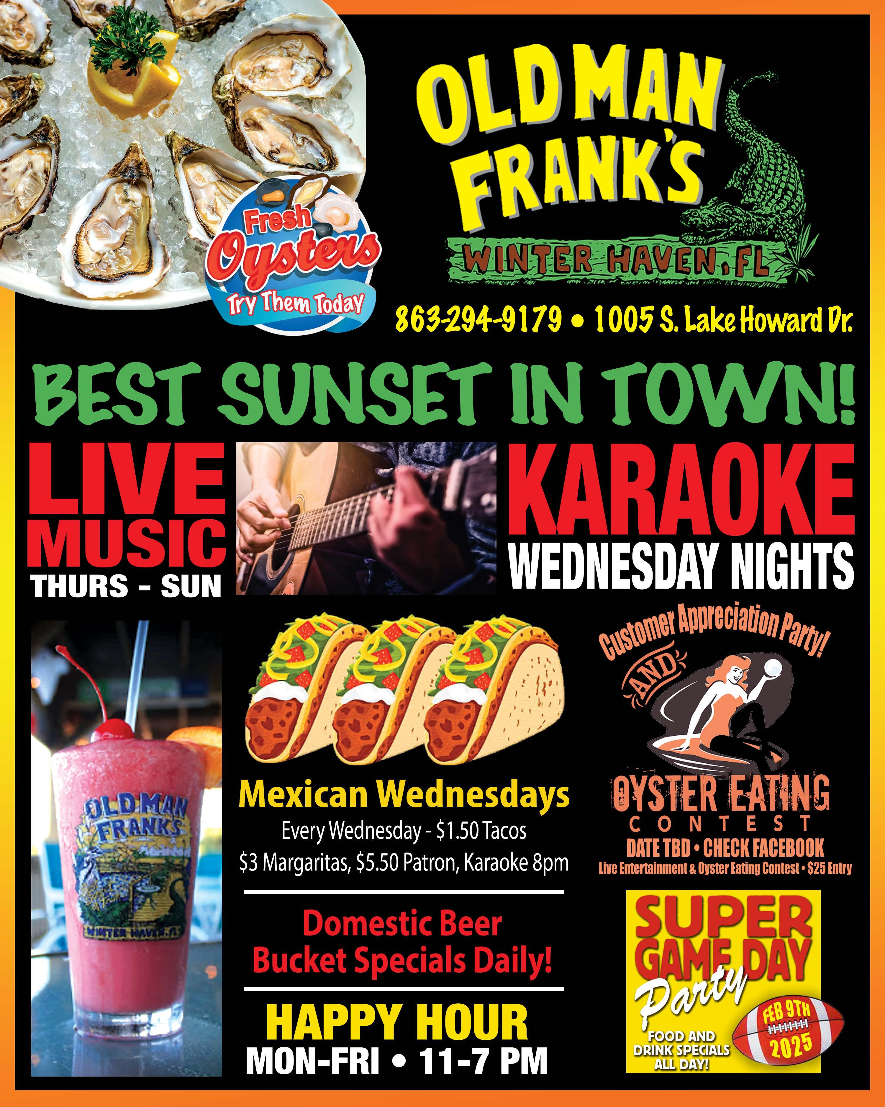 Must Try: Award Winning Wings and Burgers 300 Cypress Gardens Blvd. (863) 293-9464 • www.beefobradys.com