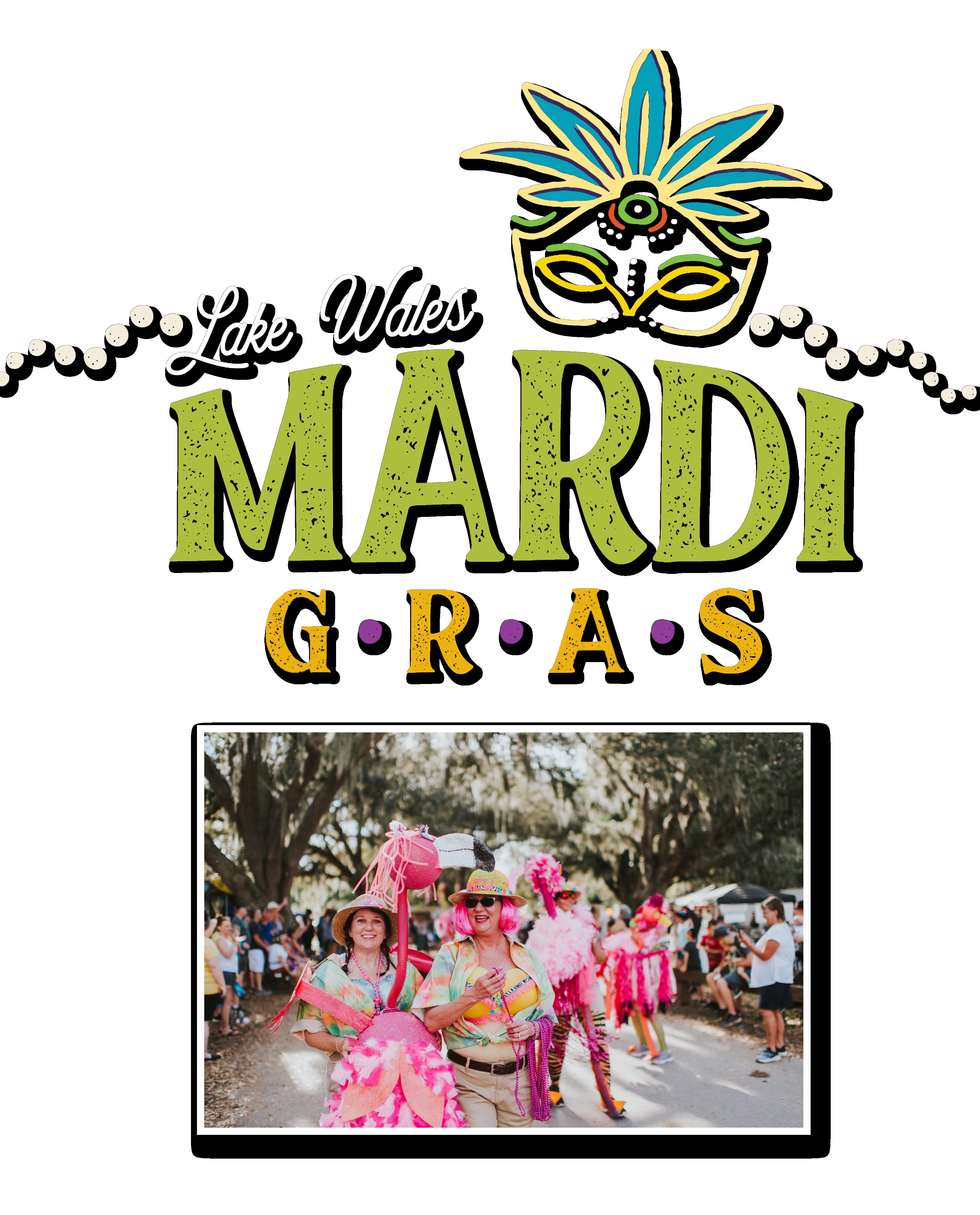 Lake Wales Mardi Gras is back for it’s 39th annual family friendly celebration on February 17th and 18th, 2023. Since 1984, the annual Mardi Gras parade and festival has entertained thousands of residents and visitors to Lake Wales with floats, beads, live music, food and spirits. Lake Wales Mardi Gras draws estimated crowds of 20,000 people to Lake Wales over the 2-day event. Lake Wales Mardi Gras is one of the largest events of it’s kind outside of New Orleans!