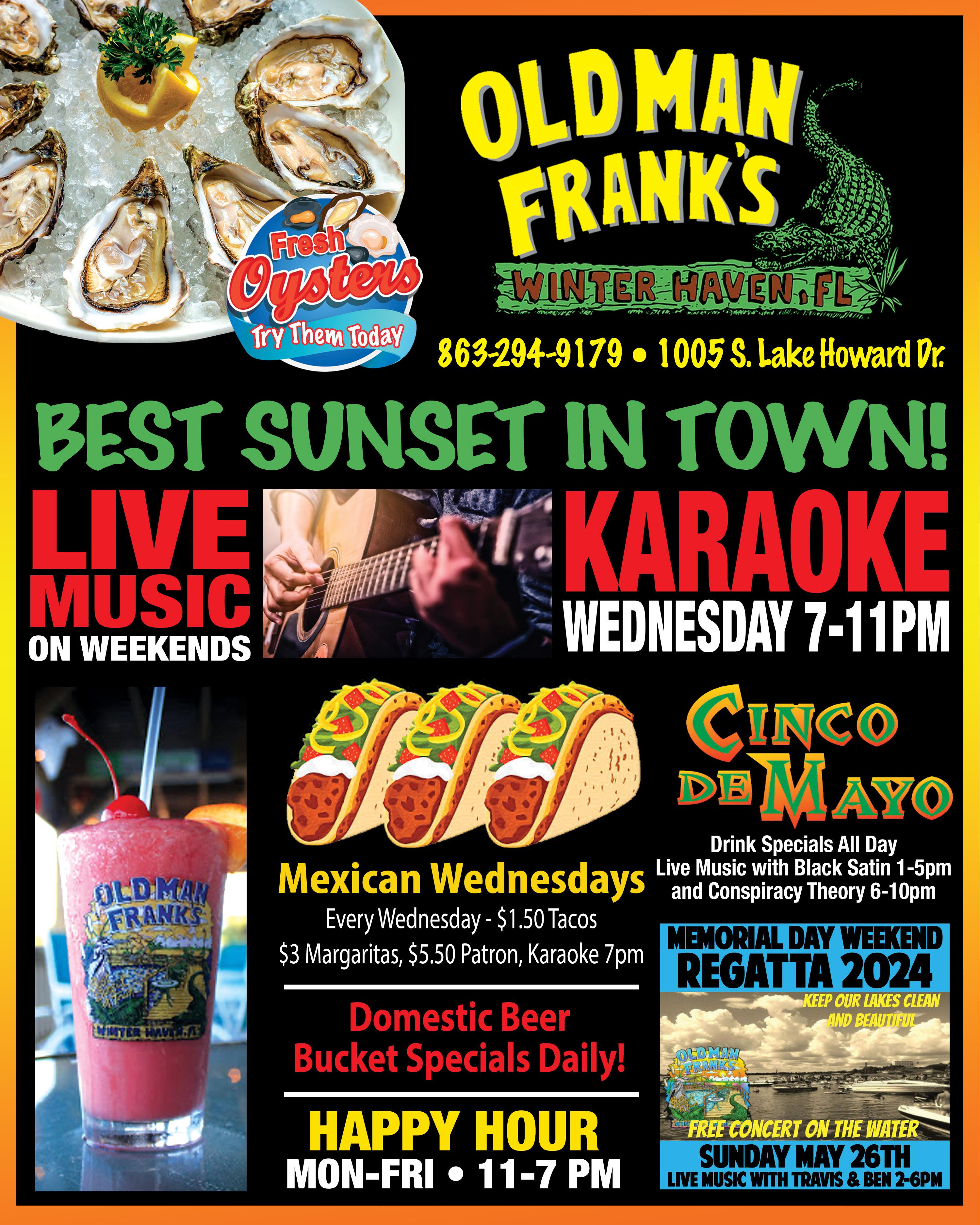 Land mark eatery in Lake Wales. Fresh fish never frozen. Fun and casual atmosphere. Lunch and dinner menu with daily specials. Mon. 4pm to 9pm. Tues.Saturday 11:30am to 9pm. Closed Sun.