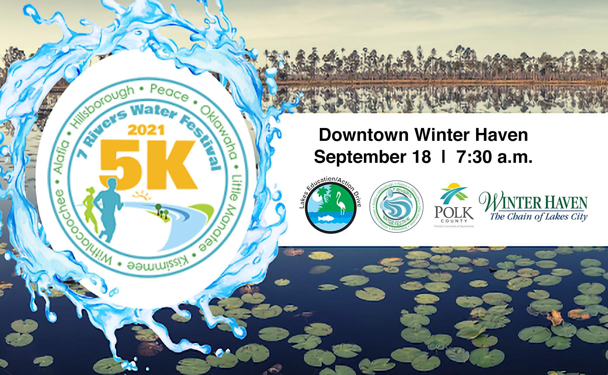 Registration 6:30 am, race starts at 7:30 am. Sign up: https://runsignup. com/Race/FL/WinterHaven/7RiversWaterFestival5k